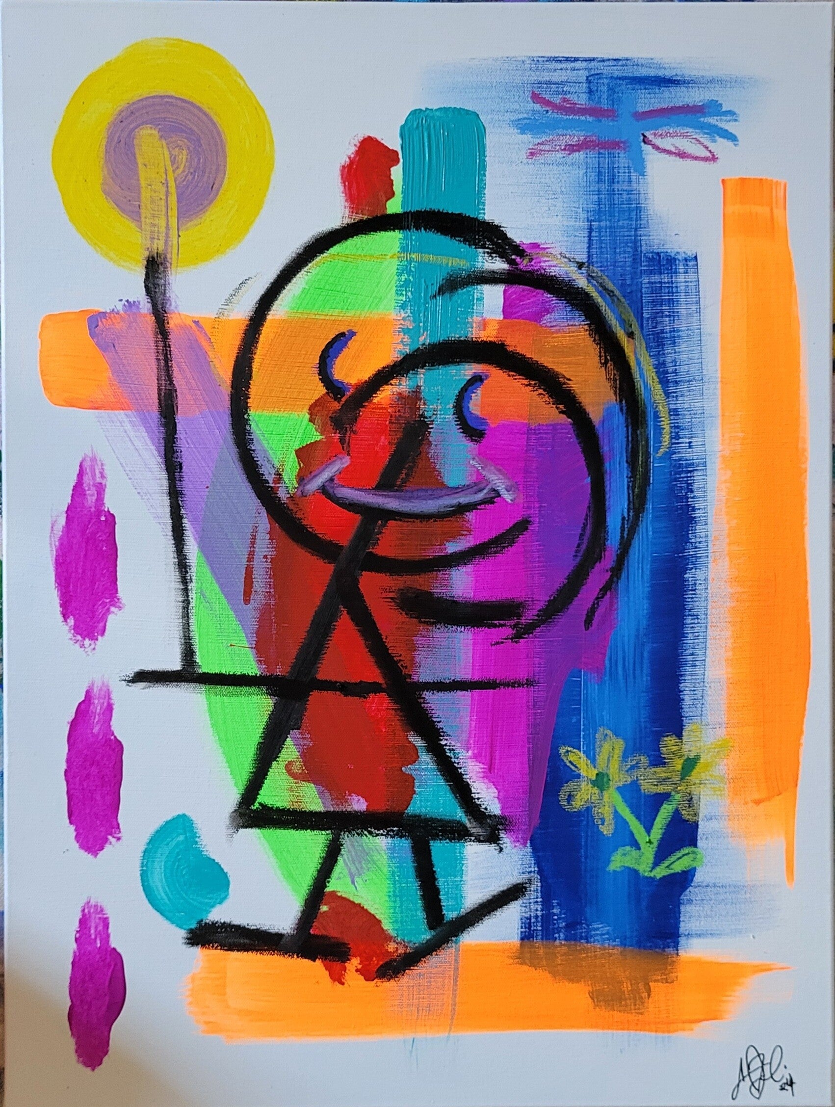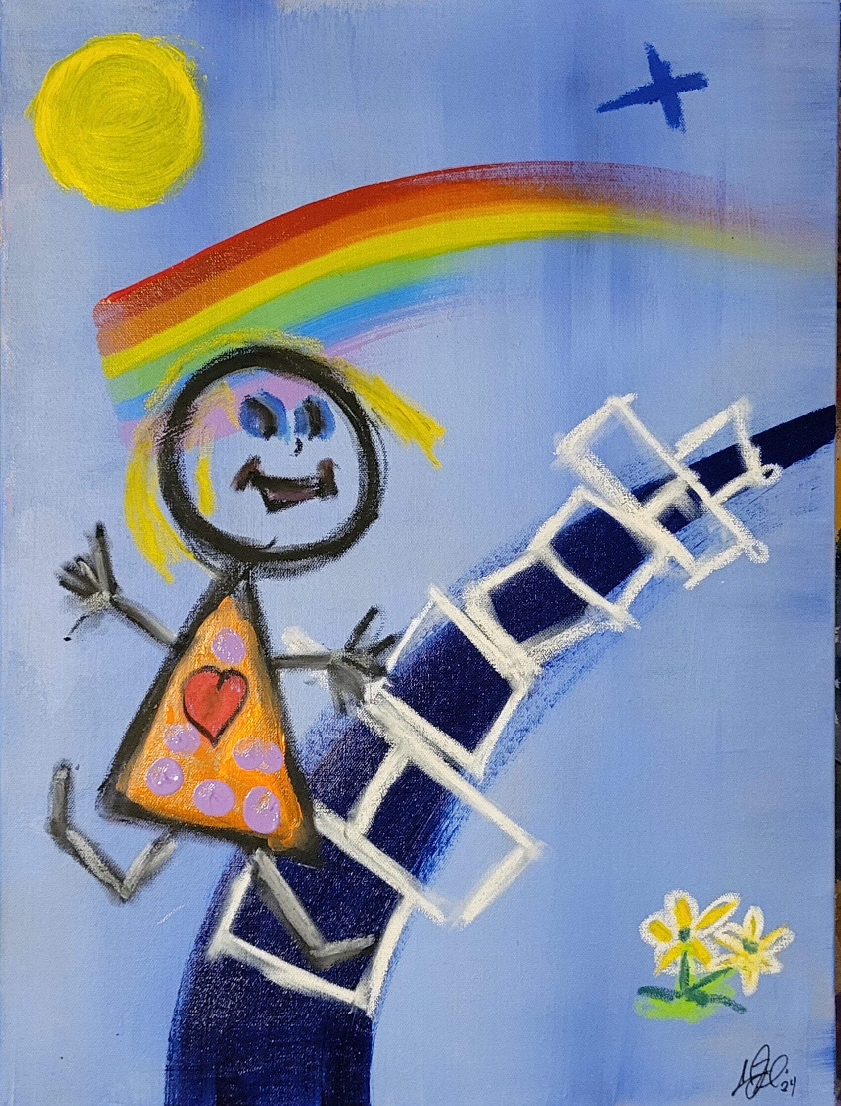 Doing My Best ~ 24x18 ~ Acrylic Paint and Oil Pastel On Canvas - $650.00